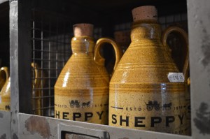 When it’s ready, the cider is transferred to bottles, jugs and kegs. Traditionally every company has its own colours – Sheppy’s kegs have red, green and brown stripes – but they also include the name; today’s workers can read!
