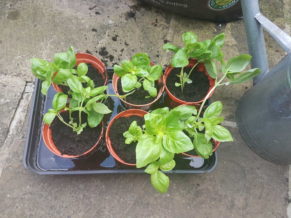 Drain out the spare water then place the trays in the brightest indoor light you have. Basil is too tender to go outdoors yet. Don’t worry if they go a bit floppy to start with; they’ve had a shock, but they will recover. If you’re feeling hungry crop off the top leaves and leave the smaller ones at the base to resprout.