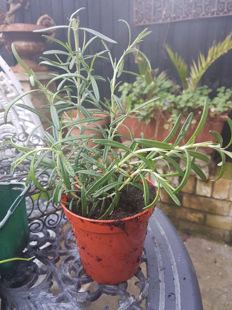 The rosemary is slightly different. It’s a ‘woody’ herb which means it has tougher stems. It’s also a ‘short-lived’ perennial, which will live for a long time. We’ll talk about that at some point.
