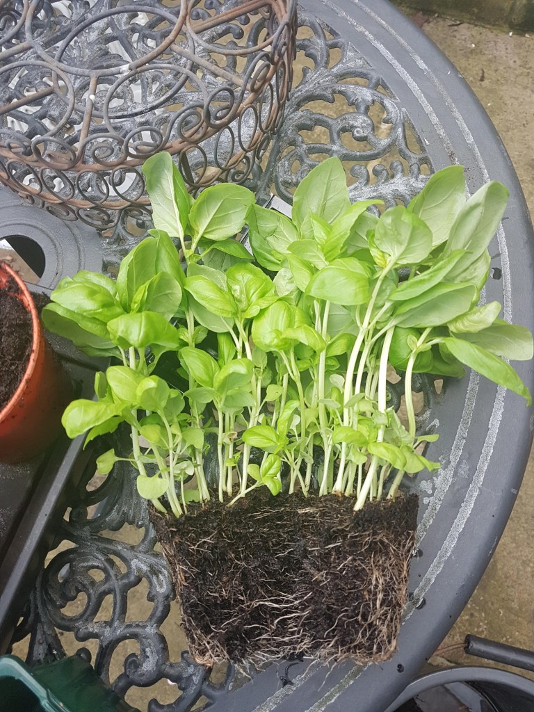 Harvest by pinching out the tops of each of the plants rather than denuding one. This means they get bushy and are less likely to bolt (flower) which makes them tough. One 50p pot of basil will keep you going for months.