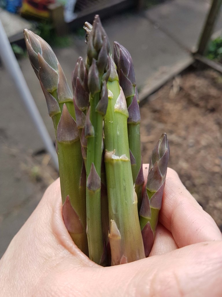 My asparagus is a trial. Talk about low-yield – this one’s often no-yield. You have to leave it three seasons before it starts cropping properly, but this stuff’s been in a good five years and I’m lucky if I get anything at all. It’s not helped by the annual invasion of asparagus beetles who seem to be able to sniff out their only food source from miles away.