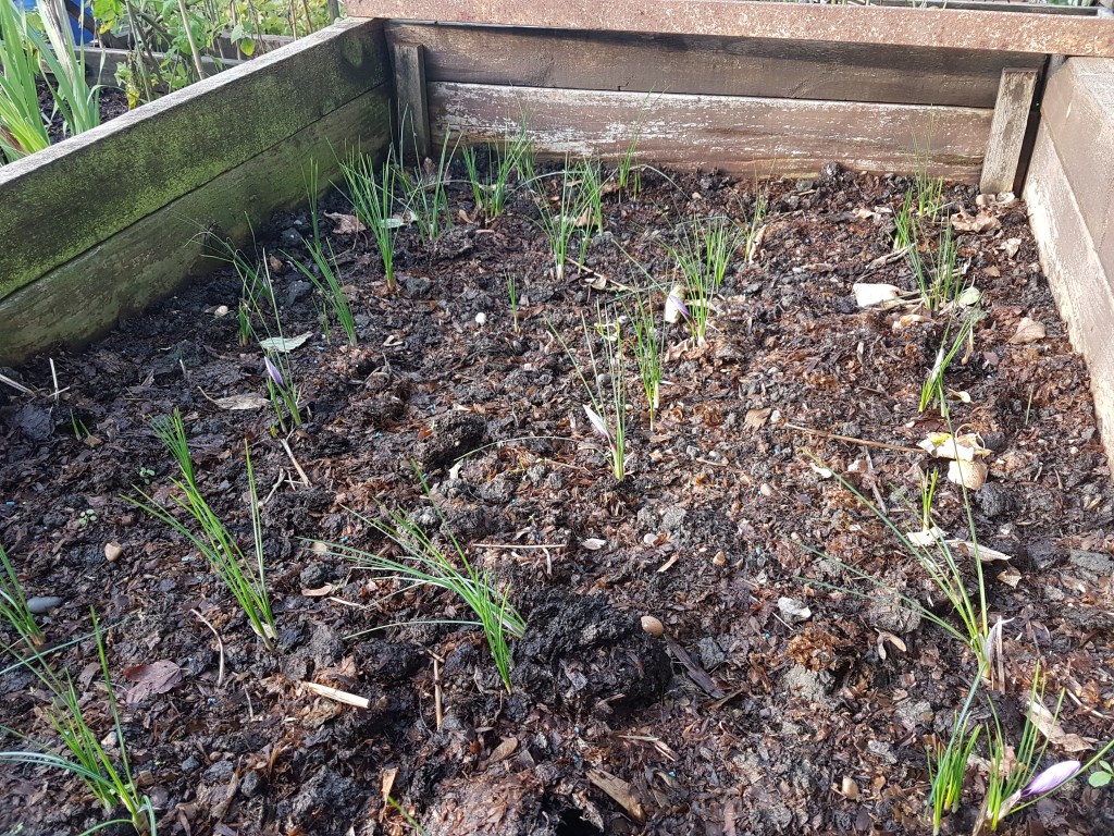 You need to set aside a space for the bulbs, and leave them in there. To get anything like a decent crop you need a decent-sized space and for 80% of the year it just looks like there’s nothing in there.