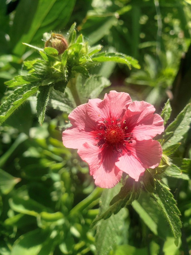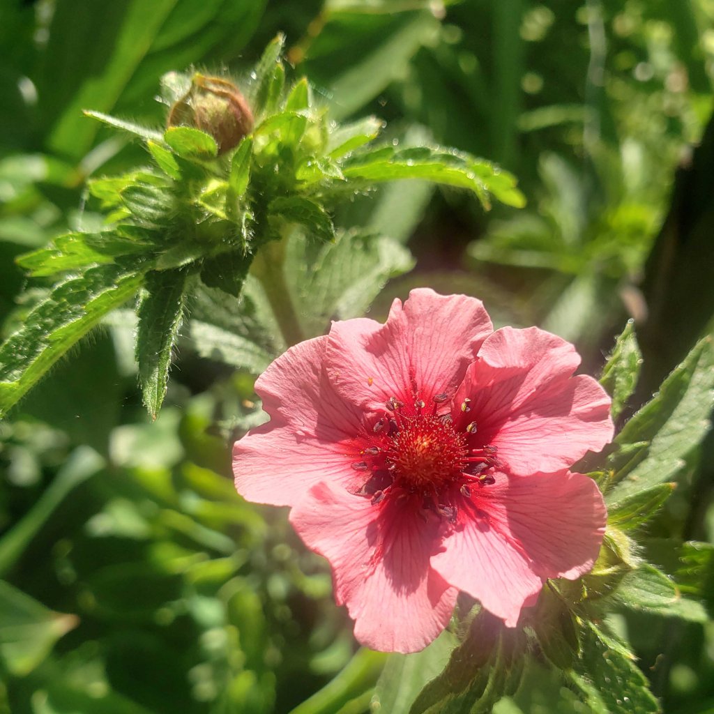 I’ve never been able to grow anything named for or by Miss Willmott. It’s as though she’s been somehow passing judgement. I couldn’t even grow the ‘invasive’ sea holly Eryngium giganteum Miss Willmott’s Ghost that she (supposedly)* sprinkled seeds of in other people’s gardens. Yet this morning she finally smiled on me and I was rewarded by Potentilla nepalensis ‘Miss Willmott’. A single open bloom in dainty rose pink, accompanied by a cheeky bud. Thank you, Ellen…